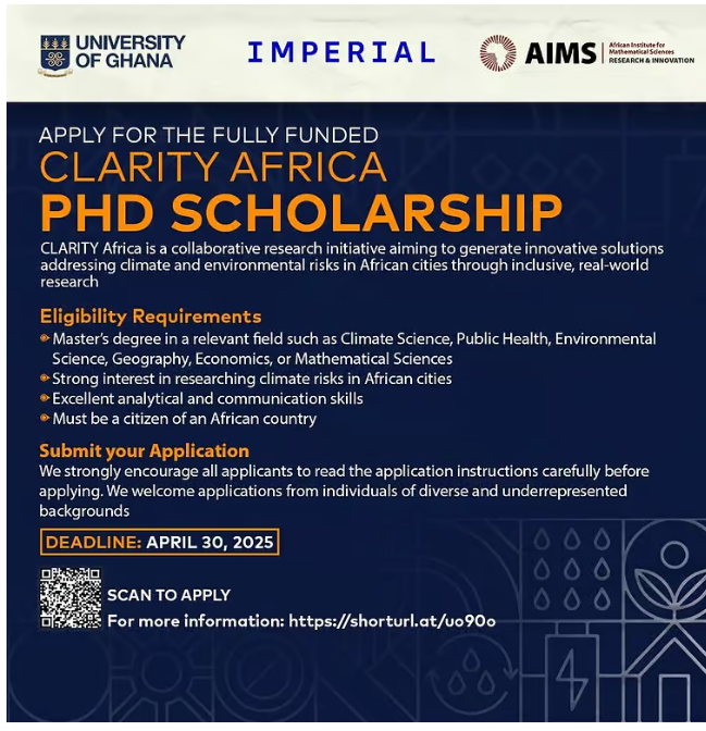 Apply For CLARITY-Africa PhD Scholarship 2025