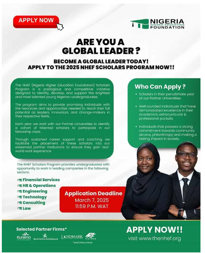 The Nigeria Higher Education Foundation (NHEF) has launched the 2025 Scholars Programme.