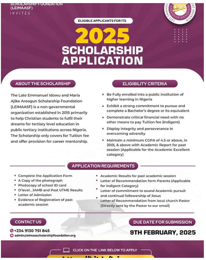 Apply For The Late Emmanuel Idowu And Maria Ajike Areogun Scholarship 2025