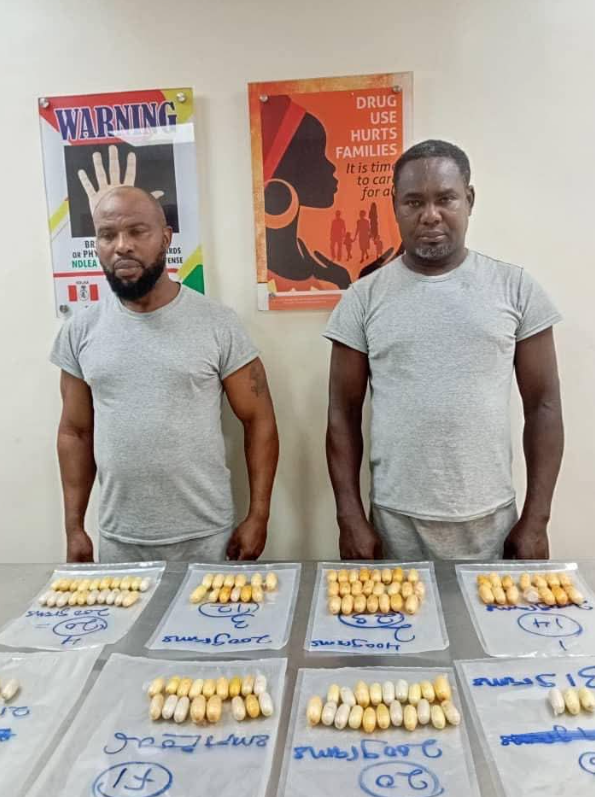 Two Brazil returnees: Ofoma Sunday and Ukachukwu Frank Ikechukwu have excreted a total of 116 wraps of heroin and cocaine they ingested after days in observatory custody following their arrest by operatives of the National Drug Law Enforcement Agency (NDLEA) at the Murtala Muhammed International Airport (MMIA) Ikeja Lagos.