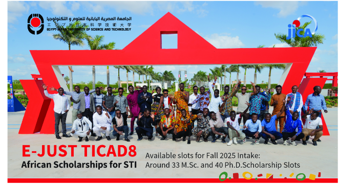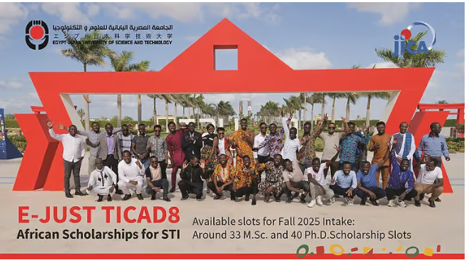 The Egypt-Japan University of Science and Technology (E-JUST) is accepting applications for the TICAD8 African Scholarships for Science, Technology, and Innovation (STI) 2025. This programme aims to develop skilled professionals in STI fields, supported by a collaboration between the Egyptian Government and the Japan International Cooperation Agency (JICA).
