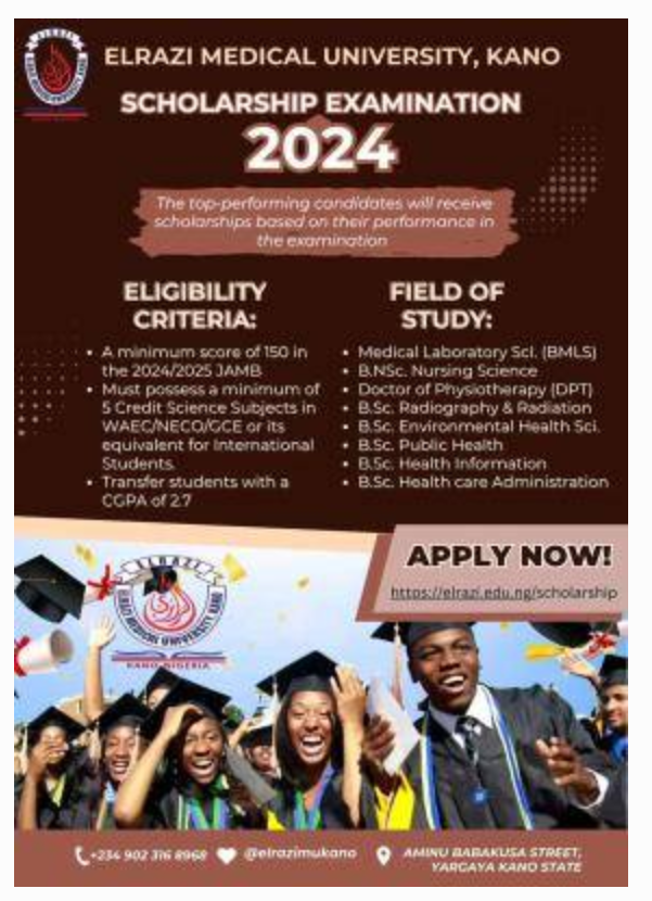Are you passionate about pursuing a career in the health sciences? Do you dream of becoming a leader in the medical field? Elrazi Medical University, Kano, is excited to announce that applications for our upcoming Scholarship Examination are coming soon!