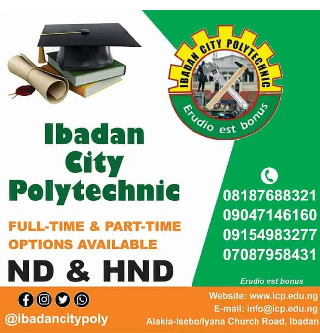 - Apply via the official Ibadan City Polytechnic portal. https://portal.icp.edu.ng/