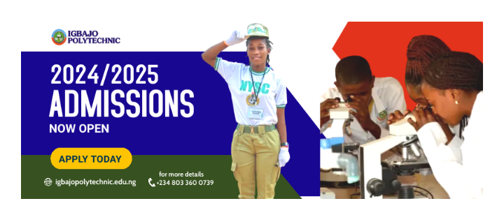The management of Igbajo Polytechnic is excited to announce the opening of its admission application portal for the 2024/2025 academic session. This is your chance to join a vibrant academic community that prioritizes excellence, innovation, and personal growth.