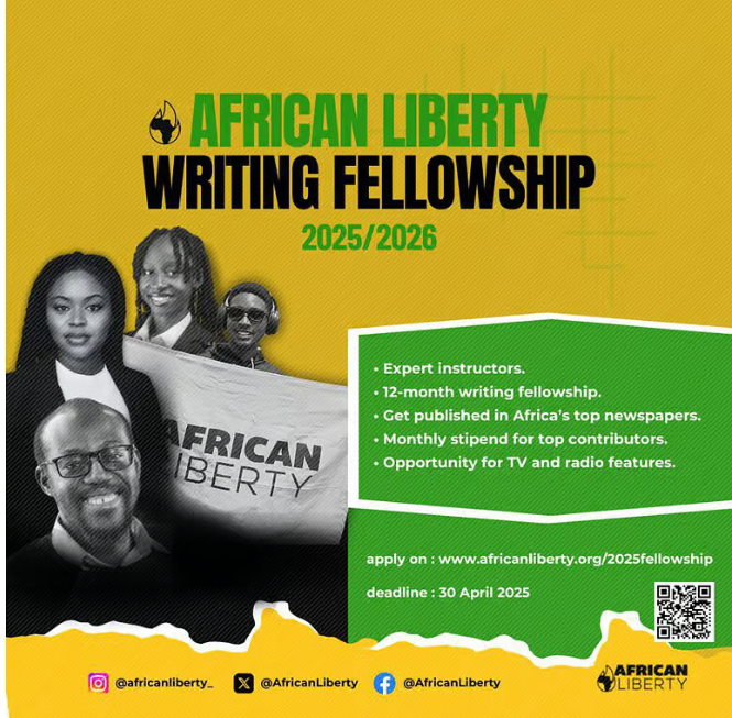 The African Liberty Writing Fellowship trains young Africans in opinion article writing, offering expert mentorship, publication opportunities, and a stipend for top contributors. The programme includes a five-week training and a 12-month fellowship. Apply before 30 April 2025 to join.