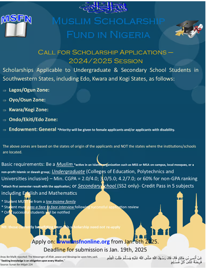 Muslim Scholarship Fund In Nigeria (MSFN) Scholarship 2025
