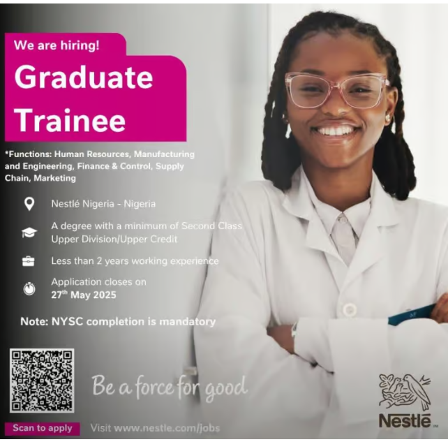 Nestlé Nigeria has launched its 2025 Graduate Trainee Programme, providing recent graduates the opportunity to gain practical experience and mentorship in one of the world’s leading food and beverage companies.