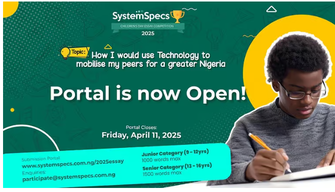 SystemSpecs invites Nigerian children to enter the 2025 Children’s Day Essay Contest.